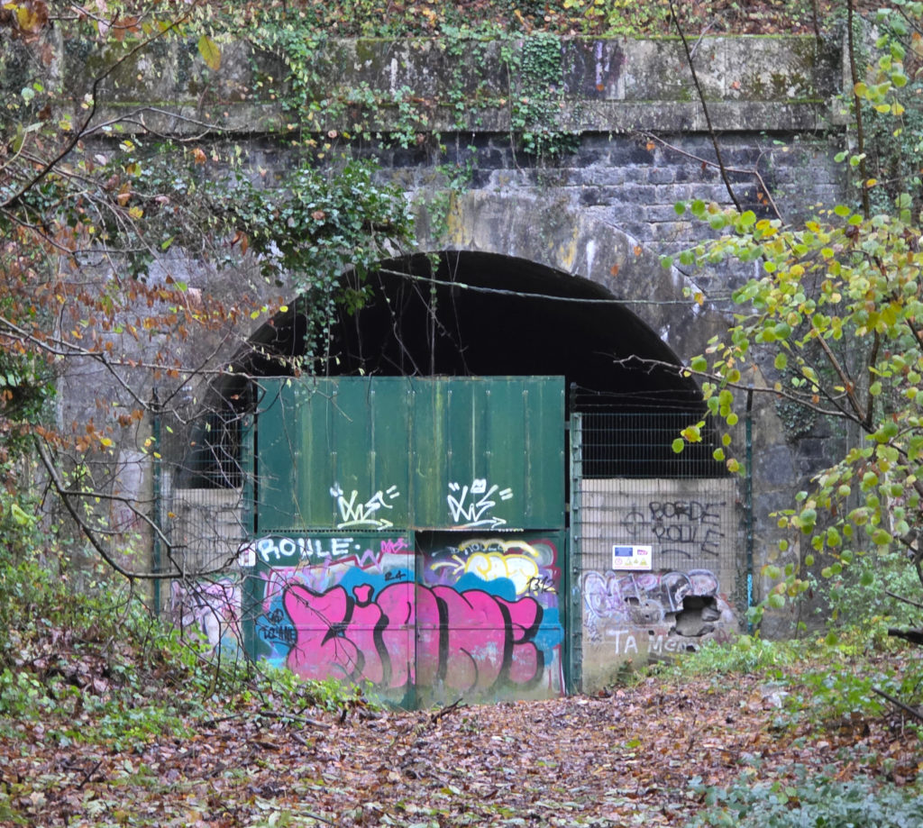 Un premier tunnel ferroviaire voit le jour, parallèle au tunnel-canal. Il est toujours visible aujourd’hui, bien que condamné. Régulièrement vandalisé, ses portes sont souvent forcées, rappelant qu’il reste un vestige très présent dans le paysage local.