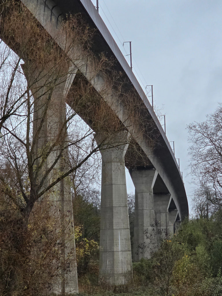 Mais cette fois, le train doit passer au dessus la butte, en gardant une courbe raisonnable. La solution retenue est spectaculaire : faire passer la ligne TGV au-dessus du vide, via un viaduc monumental épousant une courbe douce, indispensable à la vitesse des rames.